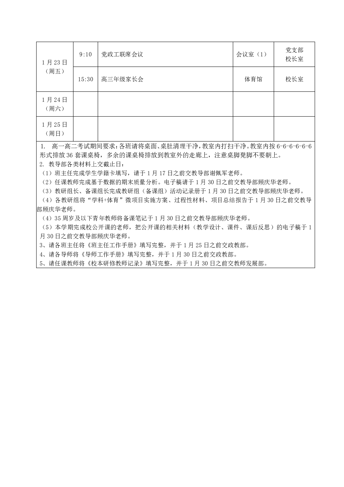 2025学年第一学期新场中学第二十周工作安排